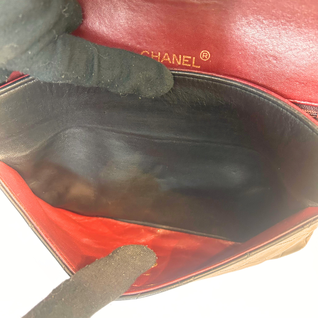 Chanel Classic Flap Bag in a size Medium in black Lambskin Leather. The Chanel Classic Double Flap is one of the most iconic handbags ever created and has been regarded for decades as a symbol of timeless style and elegance. The name “Double Flap” refers to the ingenious design of the bag, where there is an extra flap on the front that covers the zipper. The bag is made of high-quality leather and has a distinctive quilting technique that gives it a luxurious look. The bag's hardware is gold-plated with 24K gold, which is very rare as this is no longer produced this way.