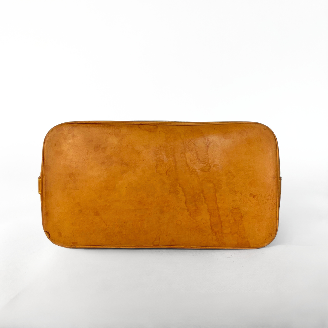 The bag has Vachetta Leather round “Toron” handles and trims, and gold-colored hardware. The handbag closes with a zipper that extends to the leather at the bottom of the bag. The inside is made of cotton Canvas and contains one small slip-in pocket, in which the date code is hidden. This timeless house icon is ideal for everyday use, worn by the hand or wrist.