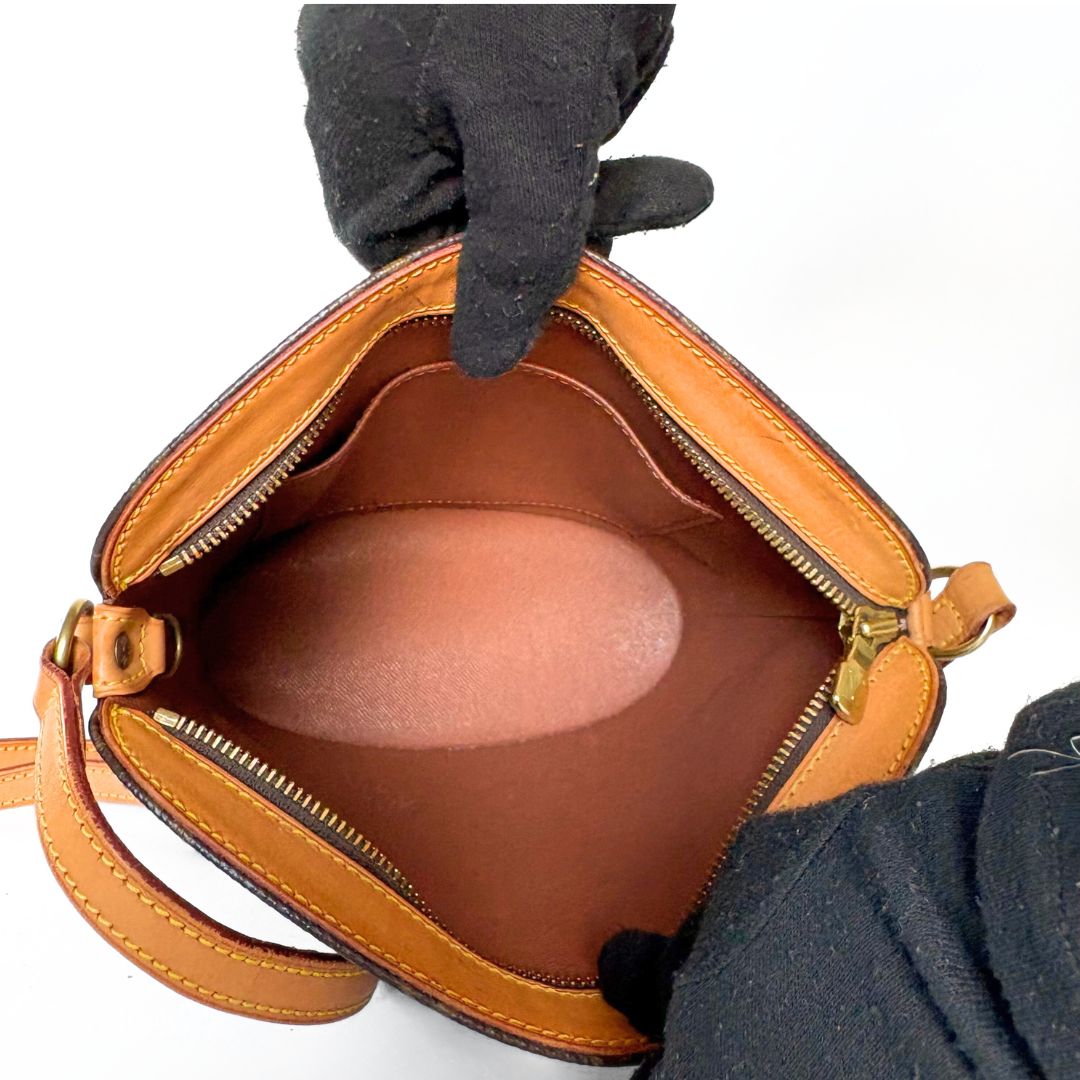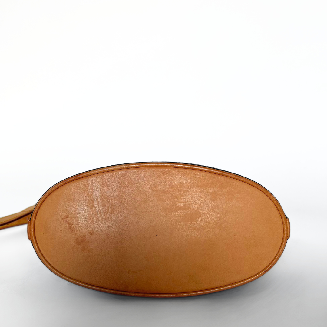 The overall condition of the bag is good because of the state of the canvas and the shape of the bag. The bottom of the bag does have a small water stain. There are some signs of use on the Vachetta leather details. The inside is very neat except for the small slip in pocket inside, which has some signs of use. This item comes with an authenticity card from our store.