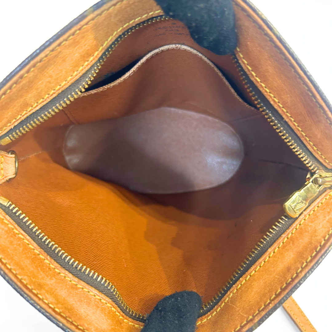The overall condition of the bag is good because of the state of the canvas and the shape of the bag. The bottom of the bag does have some scratches and is a bit darkened. There are some signs of use on the Vachetta leather details but the strap is in a pretty good state. The inside is very neat except for the small slip in pocket inside, which has signs of use and has some black stains. This item comes with an authenticity card from our store.