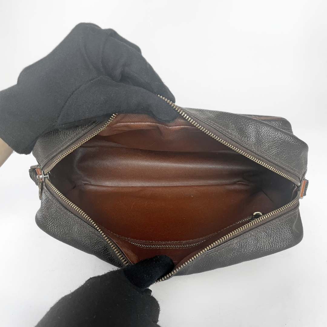 The overall condition of the bag is good because of the shape of the bag and state of the canvas, except for some very small signs of use. The golden hardware as the zipper shows some signs of discoloration. The strap shows a few signs of use, with the leather being a bit wrinkled. The inside looks very good, except for some small stains. This item comes with an authenticity card from our store.