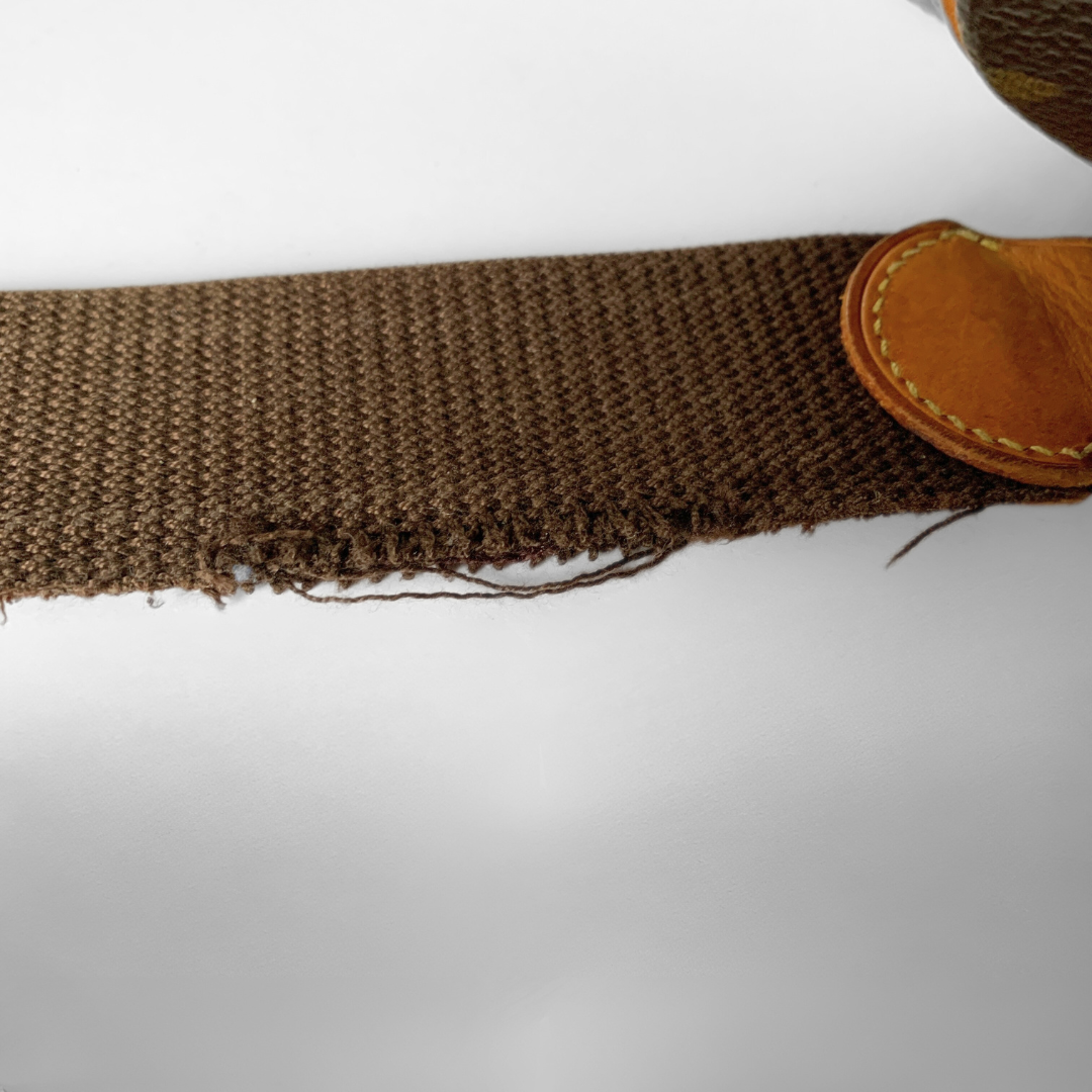 The overall condition of the bag is good because of the canvas. The Vachetta leather and the hardware shows that the bag has been used. The interior of the bag is in good condition but has some stains. This item comes with an authenticity card from our store.