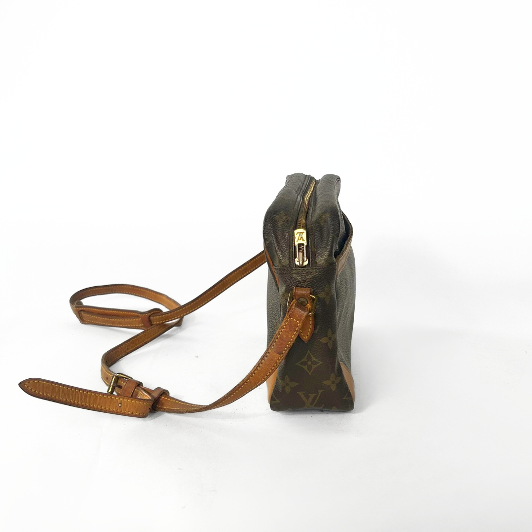 The overall condition of this vintage Louis Vuitton Trocadero messenger bag is good. The canvas is in a very good condition. The leather shows some signs of minor usage and the golden hardware shows discoloration. The inner pocket is not in a good condition. This item comes with the authenticity card from our store.
