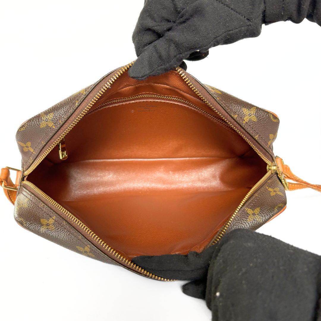 Louis Vuitton Trocadero in Monogram Canvas. The crossbody bag has Vachetta leather details and a leather shoulder strap. This bag is perfect for everyday wear and big enough to hold all your daily essentials.