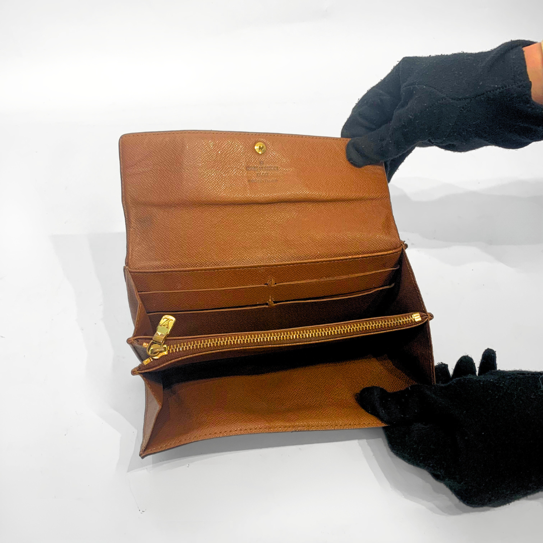 Louis Vuitton Wallet in a size Large in Monogram Canvas. The classic Monogram Canvas has been Louis Vuitton's trademark design since it was first introduced in 1896. The graphic symbols, including the quatrefoils and flowers, as well as the LV Monogram were used to prevent counterfeiting in the early days when it was first patented. Made of coated canvas, the Monogram's traditional look is also endured by its durability.